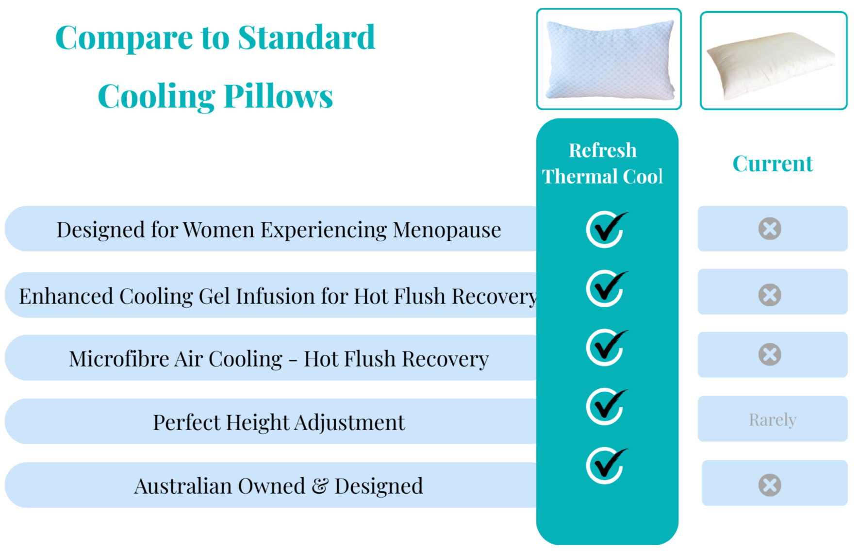 It’s the only pillow in Australia designed specifically for managing menopausal relief and sleep disturbances.